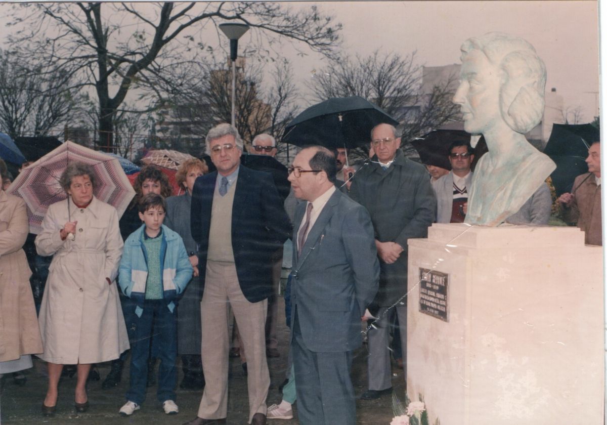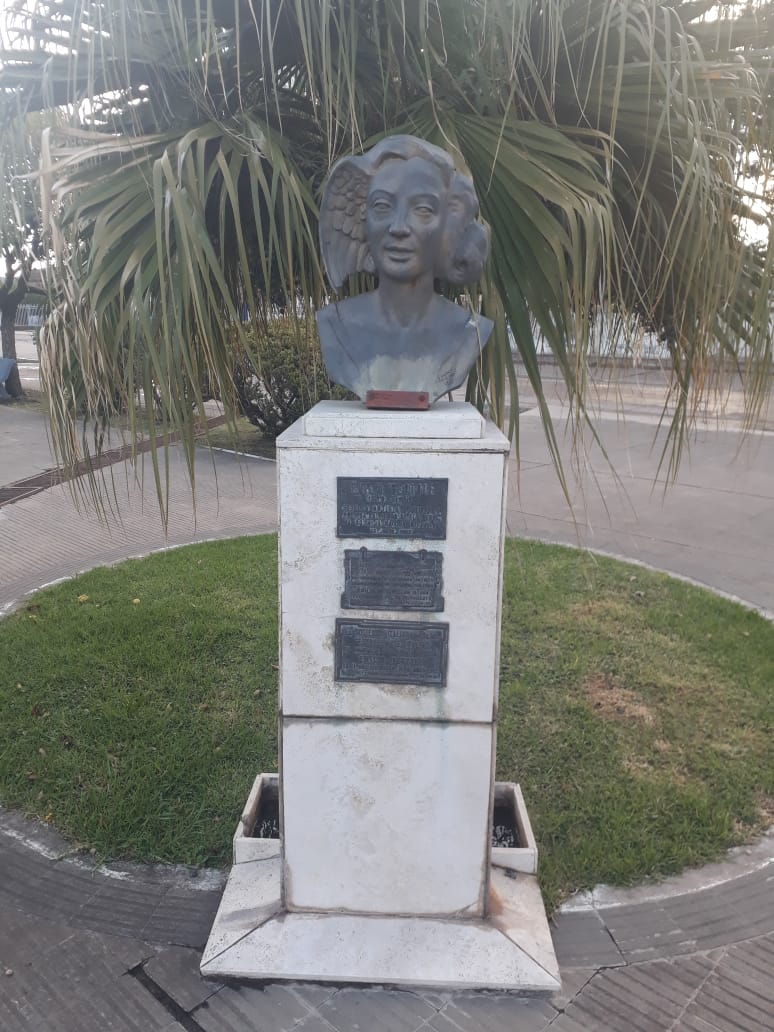 El busto está ubicado en el ángulo noroeste de la plaza, donde comienza la calle que en su nombre recuerda a la artista.