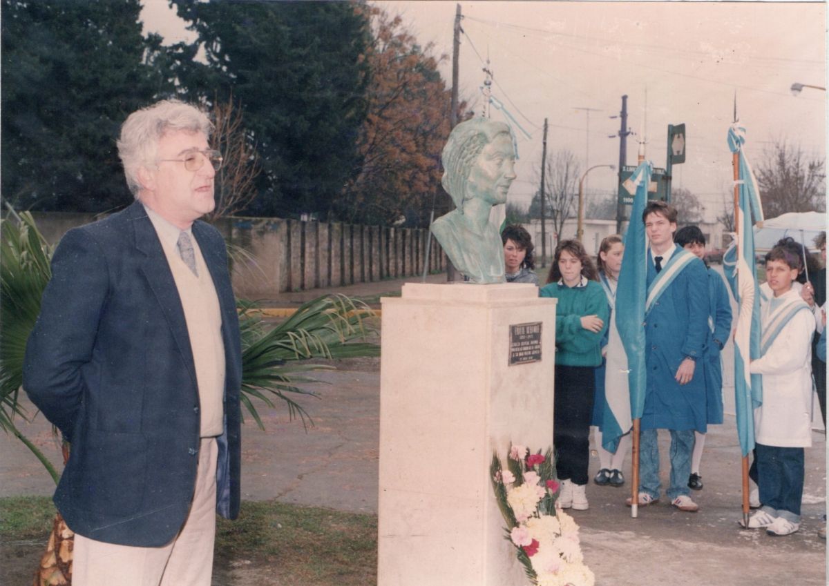 La obra fue realizada por el escultor rosarino Domingo Polichiso encomendado por el médico cañadense Arnaldo Mignone.